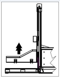 5. For at frigive produktet løfter operatøren truckens gafler med modtagerpallen, indtil den når produktet.