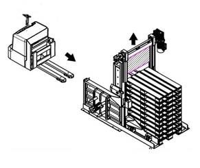 Maskinen er i stand til at erstatte paller ved at løfte, trykke, skubbe, samt stable for en komplet håndtering af paller i en arbejdsgang.