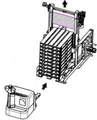 6. Operatøren udtrækker modtagerpallen med produktet på den.